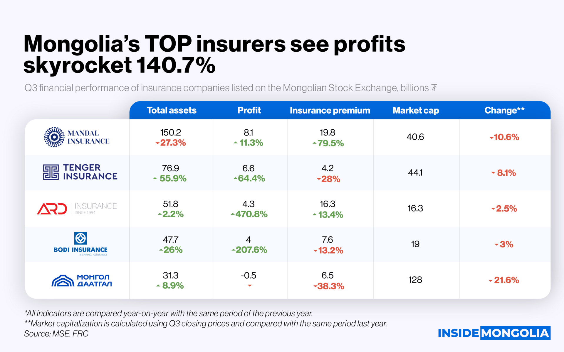 Mongoliaās insurance sector is on a strong recovery path, with profits surging and premiums climbing. The latest results from five publicly listed insurers on the Mongolian Stock Exchange (MSE) provide a clear snapshot of the industryās performance.